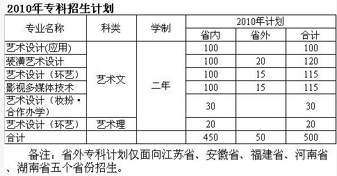 2010年山东工艺美术学院招生计划