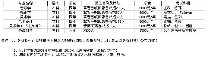 湖南人文科技学院2010年艺术类招生计划