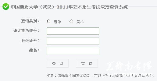 2011年中国地质大学(武汉)美术专业成绩查询