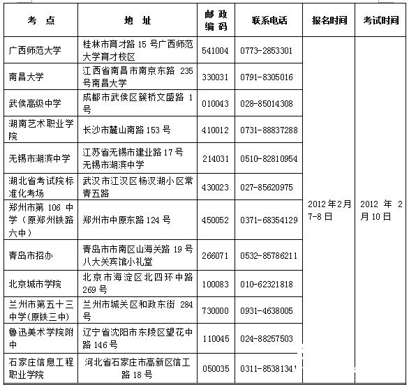 (1)、我校在桂林、南昌、成都、长沙、无锡、武汉、郑州、北京、兰州、沈阳、青岛、河北等地设有考点。考生(不含广东省)可就近选择考点报名并参加考试(各省招办若有规定则按相关文件执行)。广东省考生不得在广东省外考点报考,非广东省考生不能在广东省内考点报考,违反规定,我校有权取消考生成绩,后果由考生自己负责。