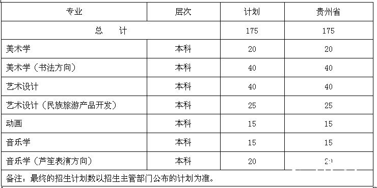 2012年贵州民族学院人文科技学院艺术类招生计划表(省内)