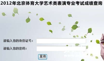 北京体育大学2012年艺术类表演专业考生成绩及各专项排名已公布,请考生自行登录“北京体育大学成绩查询系统”。查询系统密码为考生登录网上报名系统时,自己设定的密码。