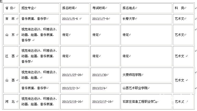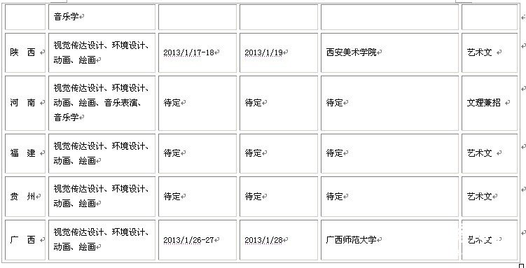 美术专业:山东、江西、山西、河南、河北、陕西、福建、广西、贵州、吉林(考生使用省专业统考成绩)。