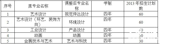 根据教育部《普通高等学校本科专业目录(2012年)》、《普通高等学校本科专业设置管理规定》文件精神,2013年我院美术类招生专业调整如下: