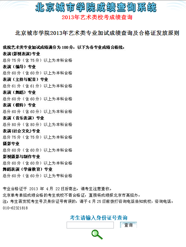 中国戏曲学院2013年艺术类专业考试合格成绩查询,中国戏曲学院...