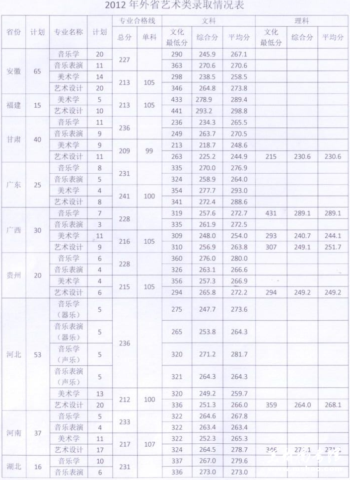 2012年大连民族学院艺术类专业录取分数线,大连民族学院,艺术...