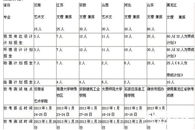 2013年哈尔滨理工大学艺术类专业时间安排