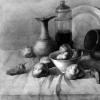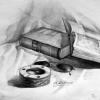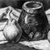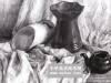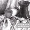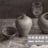 素描静物组合-陶罐 书 眼镜 桔子 白菜 酒瓶 白瓷杯 玻璃杯