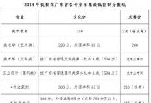 广州美术学院2014年艺术类专业录取分数线 2014年广州美术学院外省录取最低控制分数线