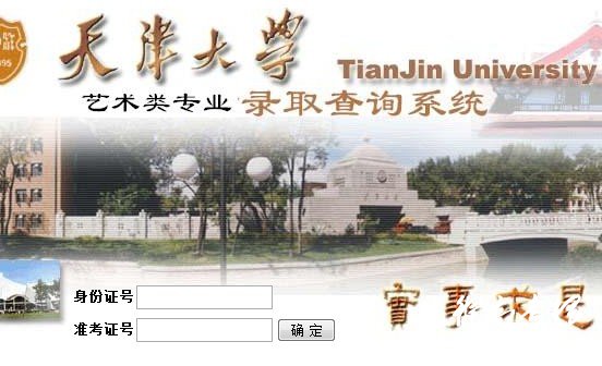 天津大学2012年艺术类考生测试成绩查询系统已开通,请点击进入艺术类查询系统,输入身份证号和准考证号进行查询。准考证号即参加我校校考时由我校编排的8位准考证号(河北考生为9位)。