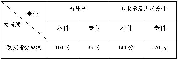云南省2008年普通高校艺术类专业发放“文化考试通知”分数线