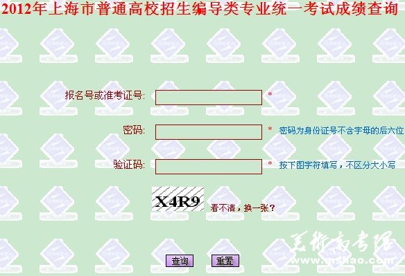 上海2012年编导类专业统考成绩查询已开通,考生可登陆上海招考热线进行成绩查询,也可点击下面链接直接查询: