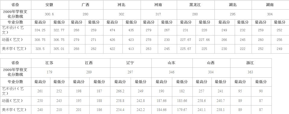 注:2010年西北大学美术类专业录取原则与2009年不同。