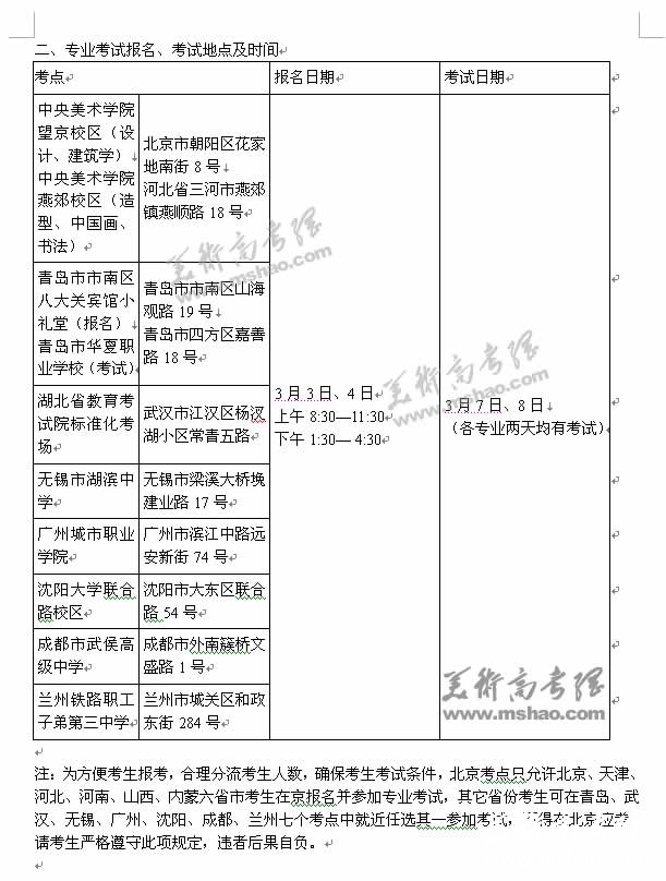 特别说明:由于各方面情况的不断调整与变化,美术高考网www.mshao.com所提供的所有信息为非商业性的教育和科研之目的,并不意味着赞同其观点或证实其内容的真实性,仅供参考,相关信息敬请以权威部门公布的正式信息为准。