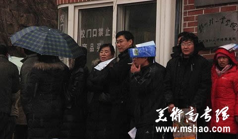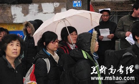 考生们陆续进入考场,雨也越下越大,还飘起了雪花。这可苦坏了在外等候的带队老师和家长,考点门口小卖部的雨伞顿时成了抢手货。“现在离开考还有一段时间,万一哪个考生出现意外状况,我们还能接应一下,开始考一段时间再离开。”胶南五中的袁老师年年都送考,但今年是第一年统考,不仅考生重视,连老师都紧张。“我们学校的170多个美术高三生,十几个老师带队,租了四辆大巴车,昨天就来青岛住下了。”袁老师说。