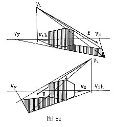 3)阳光照向画面后面,为逆光。一种情况,正方体两面都背光;另一种情况,一面受光,一面背光(图59)。