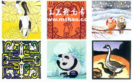 评析:采用对称式布局,增加了画面的装饰效果,只是动物的表现手法过于写实,使画面略显呆板。