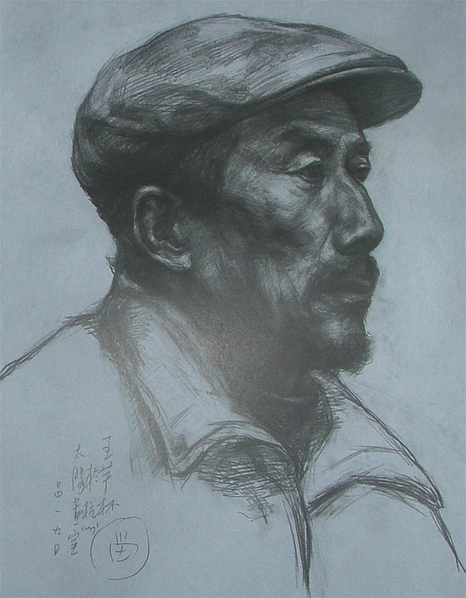 这是一幅侧面顶光男青年像。小伙子身体健康、壮实、结构分明...