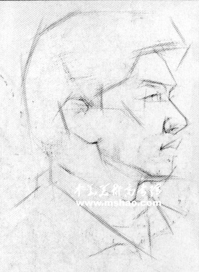 3、画出大体色调关系,从明暗交界着手,胆子要大,注意虚实变化,表现时不能简单处理,要随着形体的变化而变化。