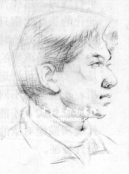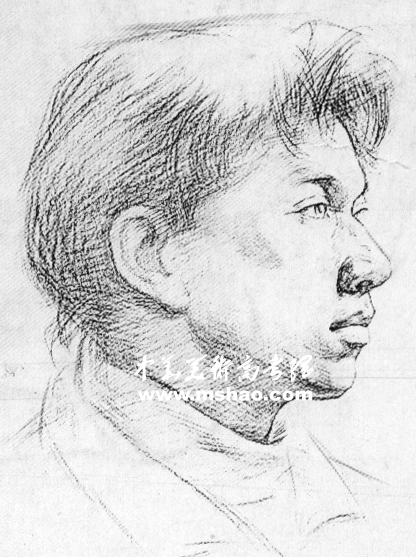4、深入刻画是在完成大体调子的基础上,从明暗交界线开始逐步向亮的推移,注意中间色的微妙变化,控制浓淡和调子互相衔接,以及面部的结构穿插。