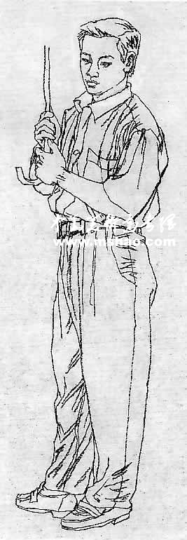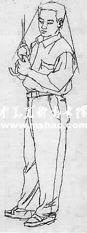 1.定出人物在纸面上的位置,画出大外形及基本比例。