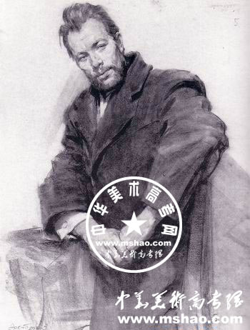 男子半身像素描作品