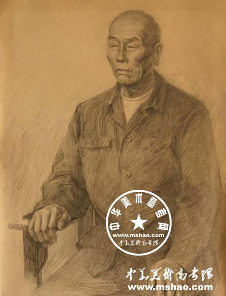 中老年人半身像素描写生作品