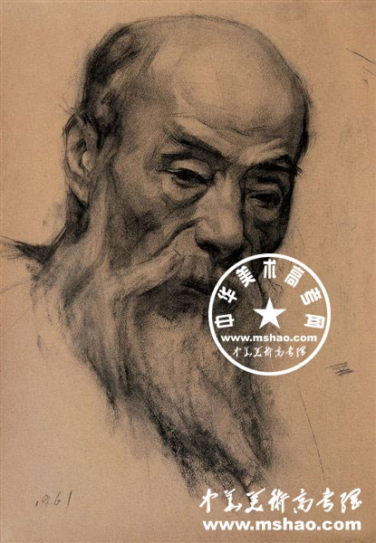 素描中老年头像作品