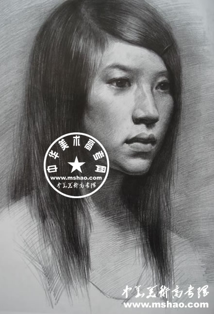 女青年头像素描作品