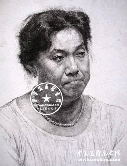 女子中青年头像素描作品