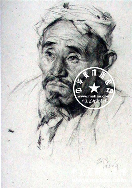 男子老年素描头像作品