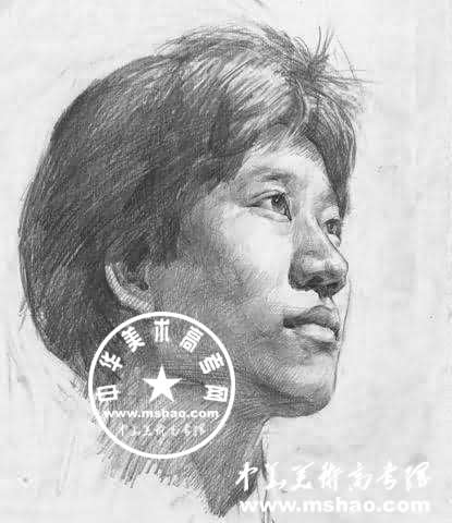 女子青年头像素描作品