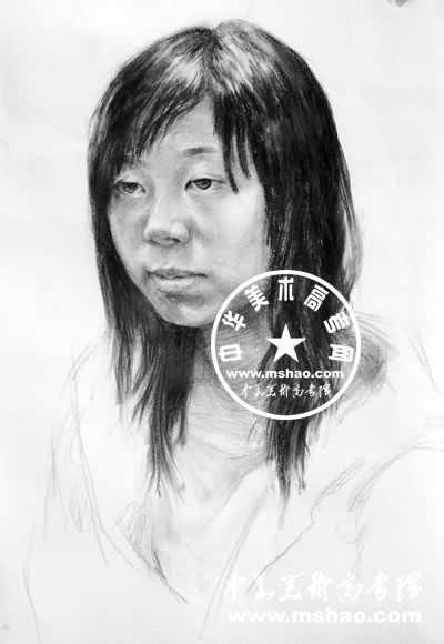 女子青年头像素描作品