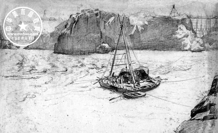 中国油画大师靳尚谊素描风景作品